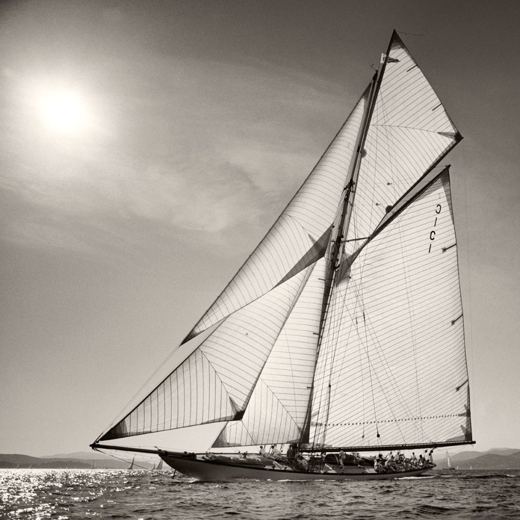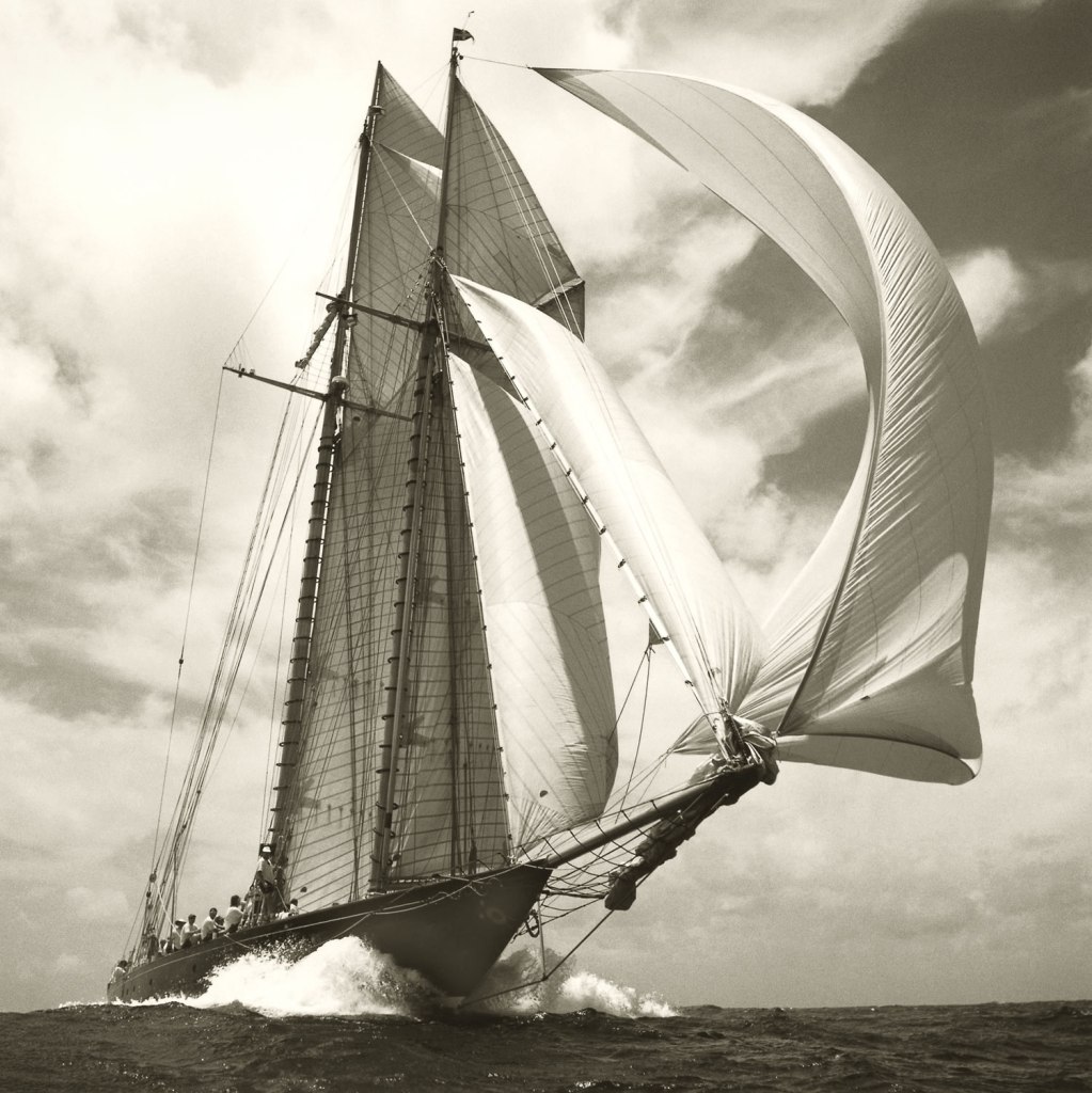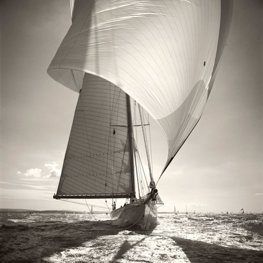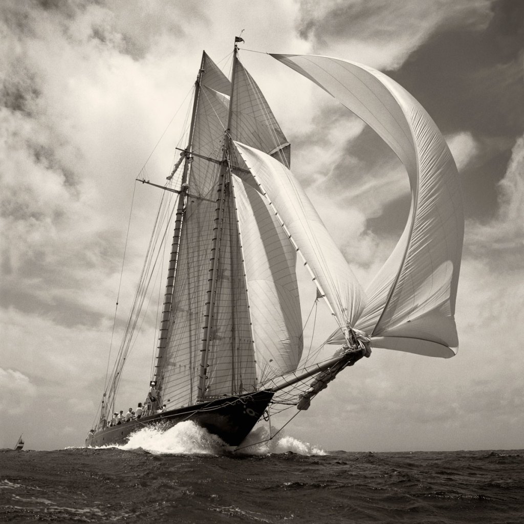 “Nothing stirs my soul more than watching a 100 year old classic yacht roll over a wave, sails flared, white water crashing off her bow & crew attentive. Watching these beauties race around a course is truly spectacular” – Michael Kahn. Sailboats features over 75 stunning photographs of sailing images from the world renowned B&W photographer, Michael Kahn. Warmly toned, classic yet dynamic sailing photographs feature regattas in Antigua, France, England & more. Michael Kahn creates luminous silver gelatin prints which allow the majestic beauty of sailing vessels to radiate. Whether we’re a sea photographer, an avid sailor or simply love the exquisite mystery of the ocean, we’ll cherish these fine prints. Elegant & extraordinary.