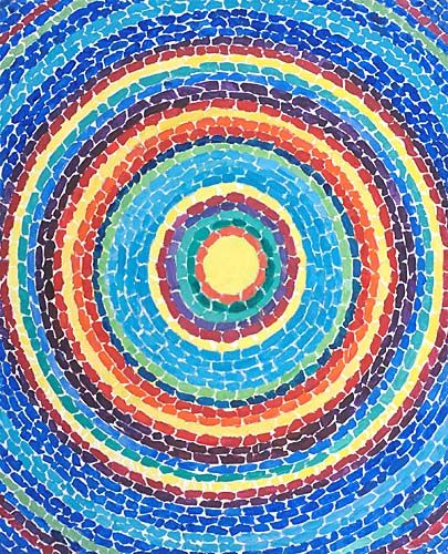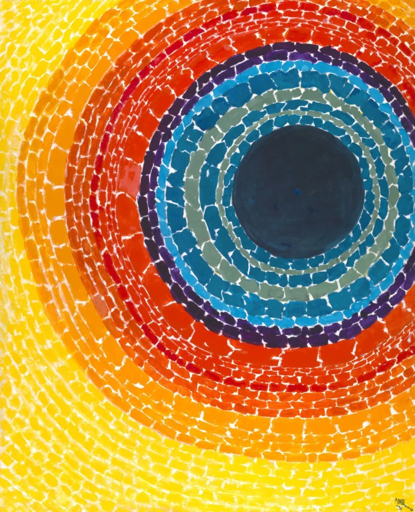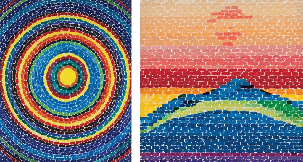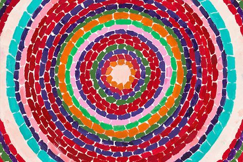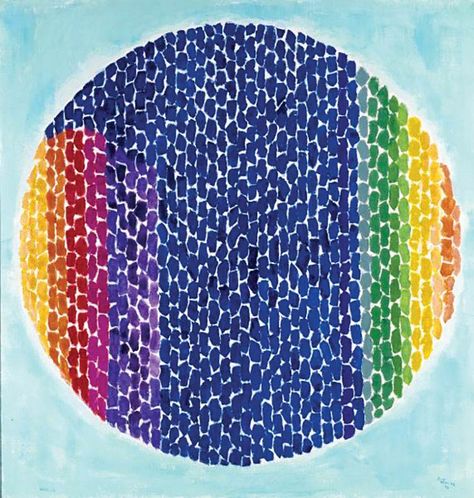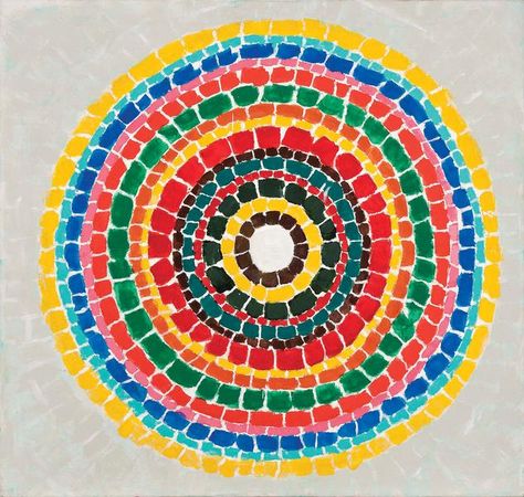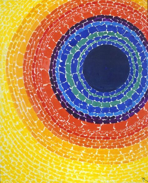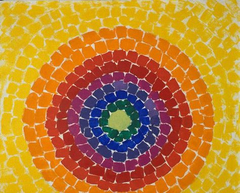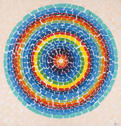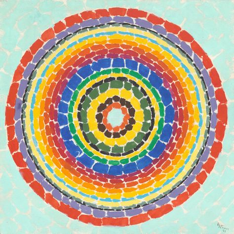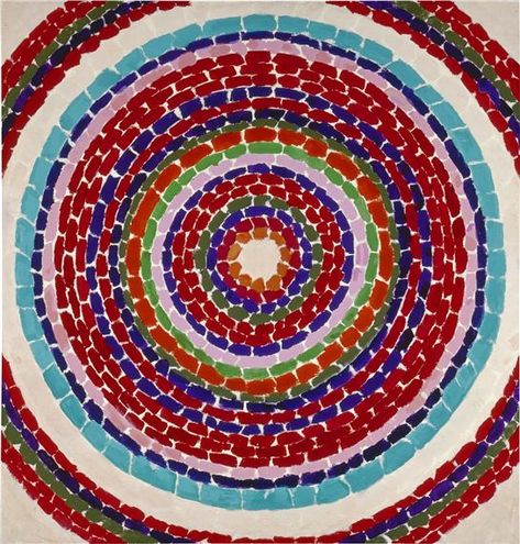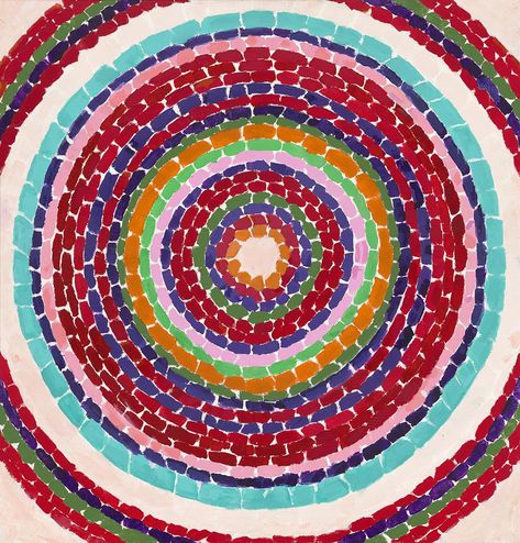 Alma Woodsey Thomas – an incredible African-American expressionist painter & art educator. Best known for her beautiful abstract paintings with gorgeous patterns, rhythms & colours. She believed that creativity should be independent of gender or race, creating works with a focus on natural beauty & the abstraction of colour. Explored colours found in trees, flowers, gardens & other natural imagery. The holly tree outside the living room intrigued her with the designs formed by it’s leaves against the window panes & with the patterns of light / shade cast on the walls of her home. Later, her works were inspired by space explorations & the cosmos. Exuberant & elegant art.