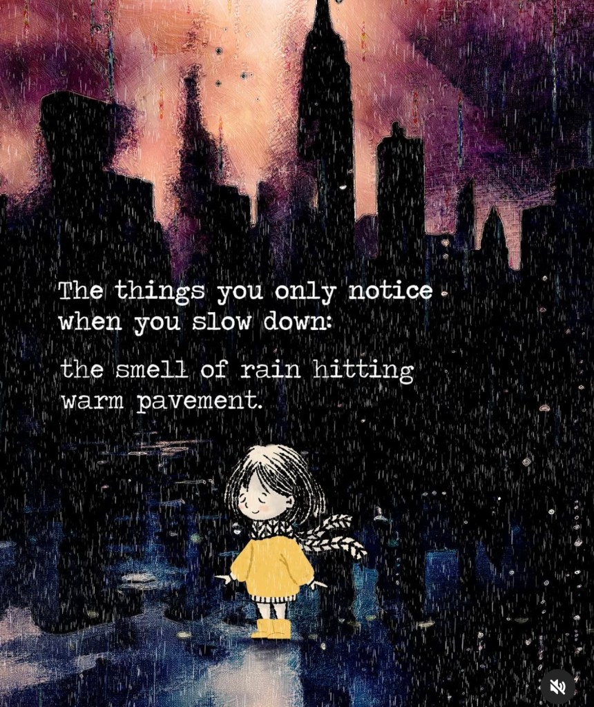 “It always pays to dwell slowly on the beautiful things, the more beautiful the more slowly. Give me a quiet life, give me trees, the wind through them, give me the sea & the song it sings. Give me heartbeats shared with those I love, give me peace & a long deep sleep. The great benefit of slowing down is reclaiming the time & tranquility to make meaningful connections with people, with cultures, with work, with nature, with our own body, mind & soul. For fast acting relief, try slowing down” – Tyler Gregson